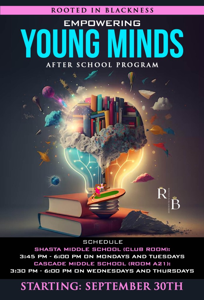 - Location: Shasta Middle School Club Room (Monday and Tuesday), Cascade Middle School Room A21 (Wednesday and Thursday)